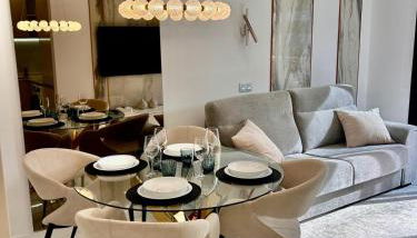 El apartamento cuenta con terraza y vistas al mar, y dispone de 2 dormitorios, una sala de estar, TV de pantalla plana, una zona de cocina equipada y 1 baño con ducha. Hay toallas y ropa de cama en el apartamento.