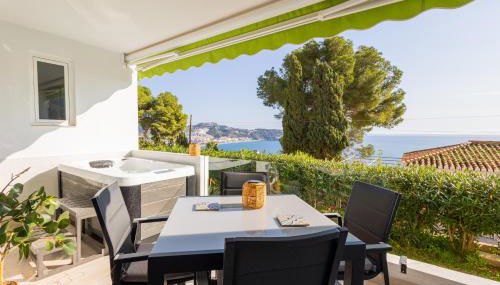 Seaside Spa Luxury Flat - Jacuzzi - Sauna - Sea view está en La Herradura y ofrece un balcón con vistas al mar y a la montaña, además de piscina al aire libre abierta todo el año, sauna y bañera de hidromasaje.