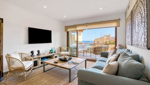 El apartamento tiene 3 dormitorios, 2 baños, ropa de cama, toallas, TV, cocina totalmente equipada y terraza con vistas al mar.