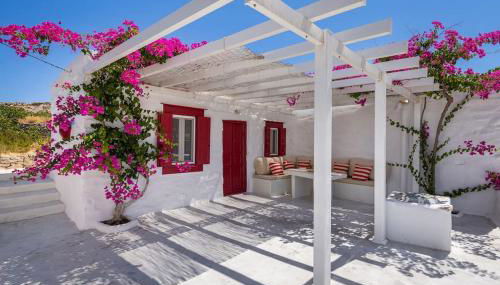 Syros - Cycladic Stone House, que cuenta con vistas a la montaña, ofrece alojamiento con balcón y cafetera, y está a unos 2,6 km de Playa de Lia. Dispone de jardín, terraza, vistas al mar y wifi gratis en todo el alojamiento.
