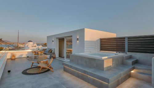 Nautica suites - Grand Suite with jacuzzi, que tiene vistas a la ciudad, dispone de alojamiento con terraza y balcón a unos 5 min a pie de Playa de Psaraliki. Este apartamento con vistas al mar y a la montaña también incluye wifi gratis.