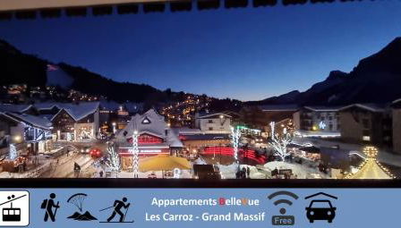 BelleVue centre, wifi, mountain view se encuentra en Les Carroz d'Arâches, en la región de Ródano-Alpes, y es un alojamiento de 3 estrellas que tiene wifi gratis.