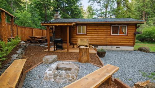 Knotty Shack- Unique Tiny Log Cabin with Hot Tub está en Ashford y ofrece alojamiento con balcón y wifi gratis. El alojamiento, que se encuentra a 49 km de Northwest Trek Wildlife Park, ofrece jardín y parking privado gratis.