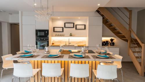 Esta villa tiene aire acondicionado y dispone de 3 dormitorios y 3 baños con ducha, bañera y secador de pelo. La cocina está equipada con nevera, lavavajillas y horno, además de cafetera y hervidor.