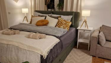 El apartamento tiene 1 dormitorio, una cocina con nevera y horno, y 1 baño con ducha, artículos de aseo gratuitos y lavadora. Hay toallas y ropa de cama en el apartamento.