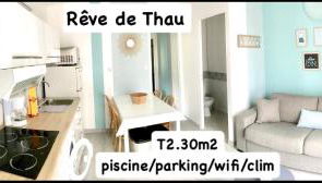 Rêve de Thau se encuentra en Balaruc-le-Vieux, a 16 min a pie de Plage Hespérides y a 25 km de GGL Stadium, y ofrece alojamiento con wifi gratis, aire acondicionado, piscina de temporada al aire libre y terraza.