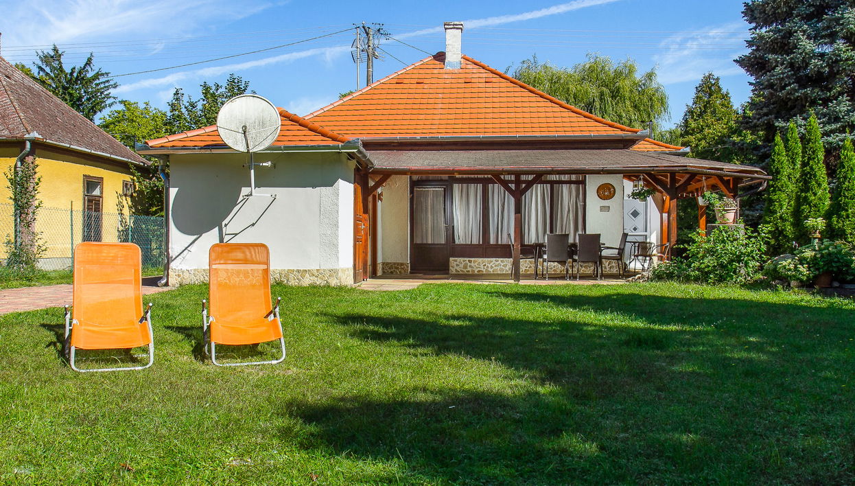 Balatonmáriafürdő: Casa unifamiliar "Marie", bonita. Lugar céntrico, tranquilo, a 500 m de un lago. Privado: terreno 500 m2 (vallada), jardín con césped, terreno con hierba. En el inmueble: Wifi. Tienda de comestibles, restaurante 400 m, playa de césped 500 m.