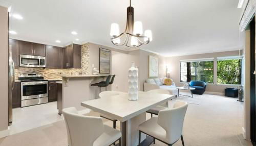 115 Modern and Serene Min to Downtown se encuentra a 15 km de Space Needle y ofrece alojamiento en Bellevue con acceso a una bañera de hidromasaje. Este apartamento también dispone de piscina privada.