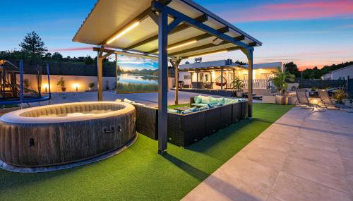 La villa ofrece bañera de hidromasaje. Hay terraza y zona de juegos infantil en Villa VERONICA with CINEMA PROJECTOR by the HEATED POOL and JACUZZI.