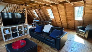 Este chalet de montaña con aire acondicionado consta de 1 dormitorio, una cocina y 2 baños. Hay TV de pantalla plana.