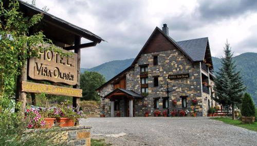 Apartamentos Viña Olivan se encuentra en Sarvisé y ofrece alojamiento con terraza o balcón, wifi gratis y TV de pantalla plana, además de jardín y bar.