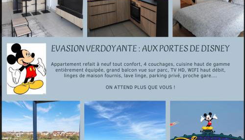Evasion verdoyante à Disney está en Bussy-Saint-Georges y dispone de alojamiento con wifi gratis a 8,6 km de Disneyland París, a 29 km de Gare de Lyon y a 30 km de Ópera de la Bastilla.