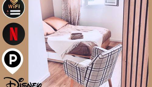 Studio EASY Check-in DISNEY 10 minutes Parking Wifi Welcome gift Starbucks coffee se encuentra en Bussy-Saint-Georges, a solo 5,6 km de Val d'Europe RER Station, y ofrece alojamiento con vistas al jardín, wifi gratis y parking privado gratis.