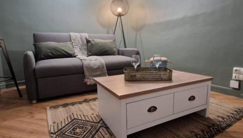 Este apartamento consta de 1 dormitorio, una sala de estar, una cocina totalmente equipada con nevera y cafetera, y 1 baño con ducha.