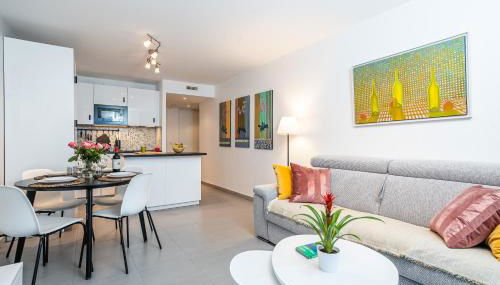 Este apartamento con aire acondicionado consta de 1 dormitorio, una sala de estar, una cocina totalmente equipada con nevera y cafetera, y 1 baño con bañera y artículos de aseo gratuitos. Se ofrece TV de pantalla plana con canales por cable.