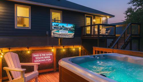 Neon Vibes Outdoor TV Hot Tub Arcade Room