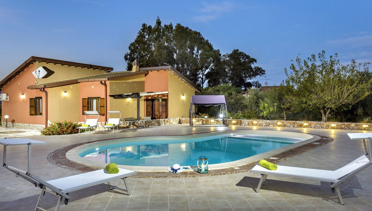 Villa "Flavia" del año 2017. En la localidad, a 6 km del centro de Castellammare del Golfo, a 8 km del centro de Scopello, lugar tranquilo, soleado, a 5 km del mar. Privado: terreno 1'000 m2 (vallada), jardín, piscina (4 x 10 m, 120 - 140 cm de profundidad, Disponible por temporada: 01.Abr. - 31.Oct.). WC en zona de piscina, ducha exterior, barbacoa, mantenimiento de la piscina a través del propietario/jardinero. Aparcamiento en el mismo terreno. Supermercado 6 km, restaurante 6 km, bar 6 km, parada autobús 7 km, playa de gravilla "Guidaloca" 5 km. Atracciones en los alrededores: Segesta Parco Archeologico 26 km, Erice 35 km, Trapani/Aliscafi per Isole Egadi 35 km, San Vito lo Capo 41 km, Marsala Saline 66 km, Palermo 70 km. A tener en cuenta: coche recomendable.