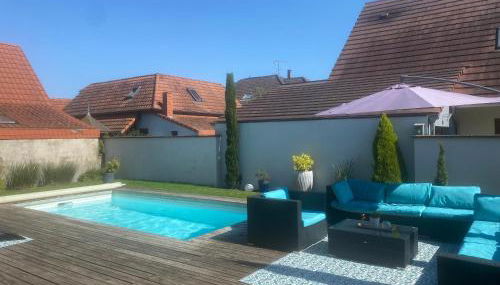 Maison d’architecte située sur la route des vins, que cuenta con piscina de temporada al aire libre, jardín y terraza, ofrece alojamiento en Châtenois con wifi gratis y vistas a la montaña.