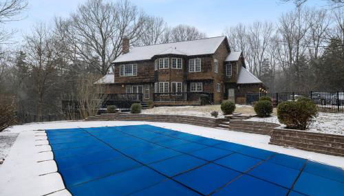 Secluded 9BR Getaway, Pool, Hot Tub & Huge Deck se encuentra en Chester, a 12 km de Estación de Metro-North de Harriman y a 29 km de Parque Estatal de Bear Mountain, y ofrece alojamiento con wifi gratis, aire acondicionado, piscina de temporada al aire libre y jardín.