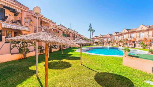 APARTAMENTO EN URBANIZACIÓN AL-ÁNDALUs CERCA DE LA PLAYA DE LA BARROSA, que cuenta con piscina de temporada al aire libre, jardín y terraza, ofrece alojamiento en Chiclana de la Frontera con wifi gratis y vistas a la ciudad.