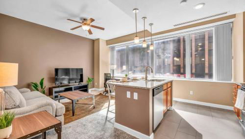 Modern High-Rise Condo in Central Downtown | Gym está en el centro de Cleveland, a 9 min a pie de Estadio Progressive Field y a 1,2 km de Salón de la Fama del Rock and Roll, y ofrece alojamiento con vistas a la ciudad.