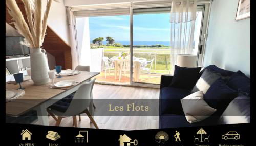 Les Flots se encuentra en Clohars-Carnoët, a 26 km de Recinto de exposiciones Lorient y a 27 km de Estación de tren de Lorient, en una zona donde se puede practicar senderismo. El alojamiento, que está a 2 min a pie de Plage du Kérou, dispone de terraza y parking privado gratis.