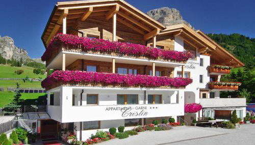 Garni Cristin & Dep Antina está en Colfosco y ofrece vistas a la montaña, jardín, terraza, bar y acceso a pie de pista. El apartahotel ofrece wifi y parking privado, ambos gratis.