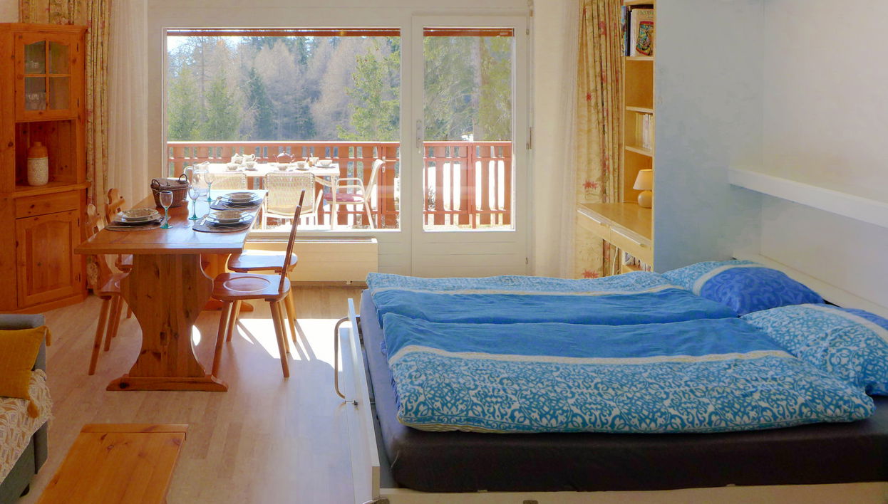 "Les Faverges 1" estudio 35 m2, en planta baja elevada. Vivienda adecuada para 2 adultos + 1 niño. Salón-comedor con 1 sofá-cama (144 cm, 200 cm de longitud), 1 cama abatible de matrimonio (135 cm, 190 cm de longitud), TV cable (pantalla plana). Salida al balcón, orientación sur con pantalla plana. Cocina (3 fogones, horno, lavavajillas, tostadora, hervidor de agua eléctrico, microondas, cafetera eléctrica, Cápsulas de café (Nespresso) extra, horno Raclette). Baño/bidet/WC. Balcón, orientación sur. Muebles de balcón. Vista al bosque. El alojamiento dispone de: plancha, cuna hasta 2 años, secador de pelo. Internet (Wifi, gratis). Garaje n. 1, altura 200 cm, ancho 210 cm. A tener en cuenta: apartamento para no fumadores.