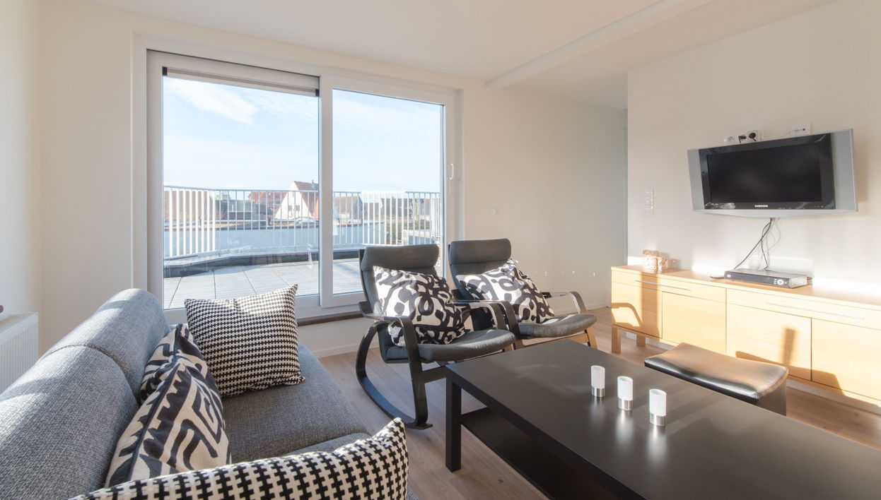 "De Zeegloed duplex with parking", apartamento de 3 estancias en 2 plantas. Vivienda adecuada para 4 adultos. Espacioso y luminoso, reformado en 2012, con mobiliario moderno y agradable: entrada con WC separado.