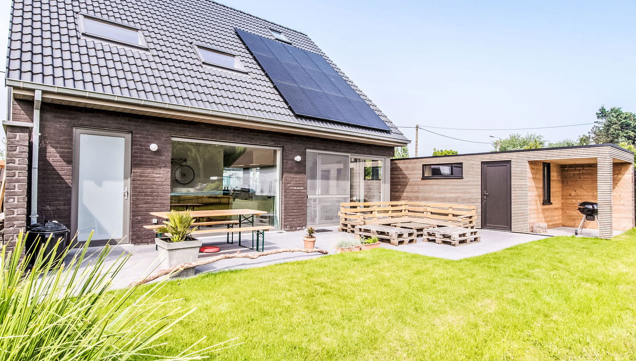 "Villa Vosseslag - garage and big garden", villa 4 estancias orientación sur. Vivienda adecuada para 4 adultos + 4 niños. Con mobiliario confortable y moderno: entrada con WC separado y ducha.