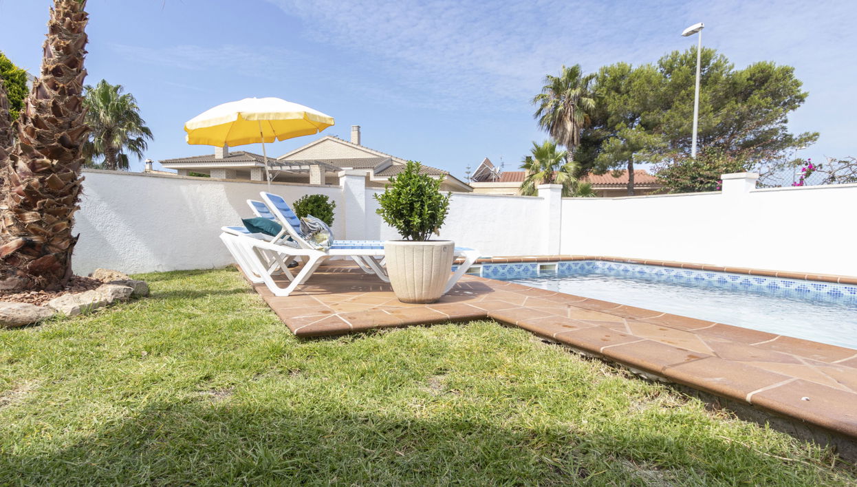 Riumar a 11 km de Deltebre: Casa "Estrella", amplia, agradable, confortable de 2 plantas, reformada en 2020. En el distrito Riumar Delta del Ebro, lugar tranquilo, soleado area residencial (villas), a 100 m del mar, a 100 m de la playa. Privado: terreno (vallada), piscina rectangular (8 x 4 m, 100 - 170 cm de profundidad, Disponible por temporada: 01.Abr. - 30.Nov.) con escalera interior. Ducha exterior, piscina de hidromasaje, terraza-jardín, porche, muebles de jardín, barbacoa. En el inmueble: Wifi, aire acondicionado, lavadora. Aparcamiento (para 2 coches) junto a la casa. Tienda, supermercado, restaurante, bar, panadería 100 m, a 5 minutos del centro andando, parada autobús "Riumar" 300 m, estación de tren "Aldea- Amposta" 25 km, playa de arena "Riumar" 100 m. Puerto deportivo 1 km, campo de golf (18 hoyos) 15 km, caminos para bicicletas 50 m. Atracciones en los alrededores: Parque natural Delta del Ebro 10 m, Port Aventura 65 km, Parque Acuatico 65 km, Barcelona 190 km, Tortosa 35 km. Zona de senderismo Parque natural Puerto Tortosa Beseit 25 km, GR 92 15 km. A tener en cuenta: coche recomendable. Adecuado para familias. Grupos de jóvenes sólo bajo petición.