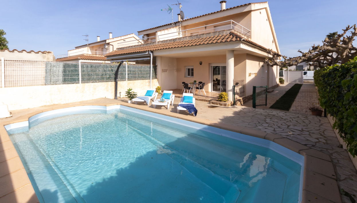Riumar a 10 km de Deltebre: Casa "Jenaro", agradable, confortable de 2 plantas. Lugar tranquilo, soleado, a 500 m del mar, a 500 m de la playa. Privado: terreno (vallada), piscina rectangular (5 x 3 m, 1 - 60 cm de profundidad, Disponible por temporada: 01.Mar. - 30.Nov.) con escalera interior. Porche, terraza, muebles de jardín, barbacoa. En el inmueble: Wifi, aire acondicionado. Aparcamiento junto a la casa, posibilidad de aparcamiento en la calle. Supermercado 500 m, restaurante, bar 300 m, panadería 700 m, parada autobús "Riumar" 650 m, estación de tren "Aldea- Amposta" 25 km, playa de arena "Riumar" 500 m. Puerto deportivo 1 km. Atracciones en los alrededores: Parque natural Delta del Ebro 2 km, Tortosa 35 km, Playa el Trabucador 29 km, Barcelona 190 km, Port Aventura 70 km. Zona de senderismo Parque natural Puerto Tortosa Beseit 52 km, GR 92 15 km. A tener en cuenta: coche recomendable. Adecuado para familias. Grupos de jóvenes sólo bajo petición.