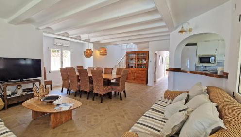 Esta villa con aire acondicionado consta de 6 dormitorios, una sala de estar, una cocina totalmente equipada con nevera y cafetera, y 3 baños con ducha y secador de pelo. Hay toallas y ropa de cama en la villa.