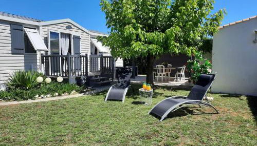 Mobil-home 3 pièces à Dolus-d'Oléron - Capacité 4 personnes - FR-1-246A-120 se encuentra en Dolus-d'Oléron, a 2,1 km de Plage de la Remigeasse, a 10 km de Fuerte Boyard y a 39 km de Zoo de la Palmyre. Este alojamiento ofrece parking privado gratis y acceso a una terraza.