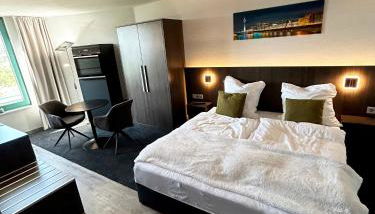 Aparthotel in Düsseldorf am Medienhafen mit Küche está en Düsseldorf, a 17 min a pie de Paseo de la ribera del Rin y a 1,2 km de Torre del Rin, y ofrece wifi gratis, restaurante y aire acondicionado.