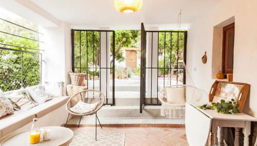 La casita del pueblo GARDEN petfrienly con chimenea, que tiene vistas al río, dispone de alojamiento con patio y cafetera, y está a unos 43 km de Parque de las Ciencias de Granada.