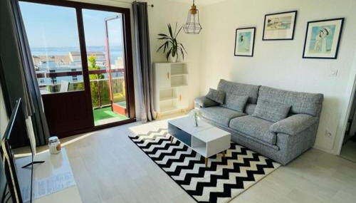 F2 près débarcadère, en centre ville, des thermes EVIAN LES BAINS 2 étoiles, que cuenta con vistas a la ciudad, dispone de alojamiento con terraza y balcón a unos 12 min a pie de Campo de golf Evian Masters.