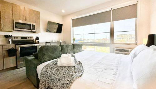 Studio Apt with City View, Rooftop and Gym se encuentra en Filadelfia, a 14 min a pie de Centro de Convenciones de Pensilvania y a 1,6 km de Campana de la Libertad, y ofrece alojamiento con wifi gratis, aire acondicionado y centro de fitness.