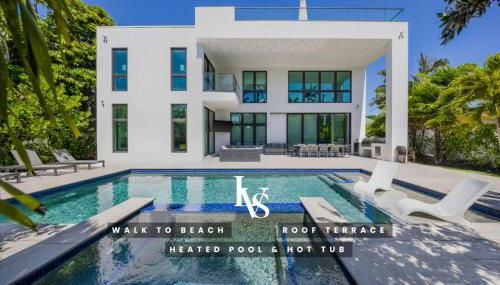 LVS Villa Blanco 5BR Coastal Oasis with Rooftop Sunset Deck Heated Pool Spa & Walk-to-Beach Access está en Fort Lauderdale, a 11 min a pie de Playa de Fort Lauderdale y a 2,2 km de Fort Lauderdale Beach Park, y ofrece alojamiento con wifi gratis, aire acondicionado, jardín y casino.