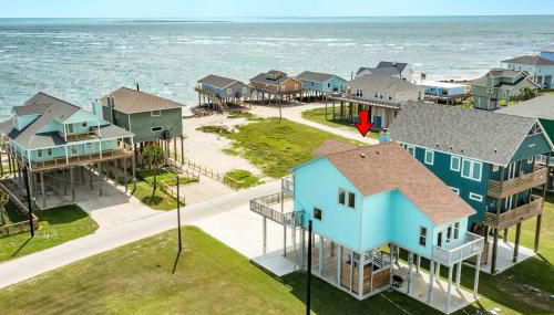Cyan Sea - Beautiful Sunrises & Sandy Seas, Relax!, que cuenta con vistas al mar, ofrece alojamiento con patio a unos pocos pasos de San Luis Pass Beach. Parque estatal de Galveston Island y Parque acuático Schlitterbahn Galveston Island están a 22 km y a 37 km de la casa o chalet, y hay wifi gratis.