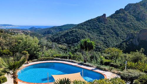 VILLA L'ESTEREL AVEC PISCINE VUE MER -MANDELIEU 06210- 6 Pers, que cuenta con piscina al aire libre, jardín y terraza, dispone de alojamiento en Fréjus con wifi gratis y vistas al mar.