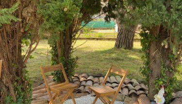 La casa o chalet cuenta con terraza y vistas al jardín, y tiene 2 dormitorios, una sala de estar, TV de pantalla plana, una cocina equipada con nevera y lavavajillas, y 1 baño con ducha. Hay toallas y ropa de cama en la casa o chalet.