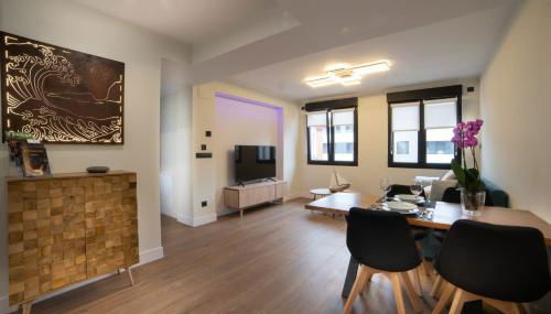El apartamento cuenta con terraza y vistas a la ciudad, y tiene 2 dormitorios, una sala de estar, TV de pantalla plana, una cocina equipada con nevera y lavavajillas, y 1 baño con ducha. Hay toallas y ropa de cama en el apartamento.