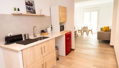 Este apartamento con aire acondicionado consta de 2 dormitorios, una sala de estar, una cocina totalmente equipada con nevera y cafetera, y 1 baño con ducha y secador de pelo. Hay toallas y ropa de cama en el apartamento.