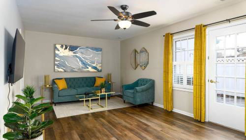Aqua Oasis - Central & Stylish - 3 BR / 3 BA está a 5,5 km de Escuela de Enfermería de la Universidad de Carolina del Norte en Greensboro y a 7,6 km de Bennett College, y dispone de wifi gratis y jardín.
