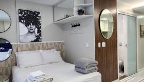 Studio Costa a Mar, que cuenta con piscina al aire libre, zona de playa privada y terraza, ofrece alojamiento en Guarapari con wifi gratis y vistas a la ciudad. Este alojamiento frente a la playa ofrece mesa de billar.
