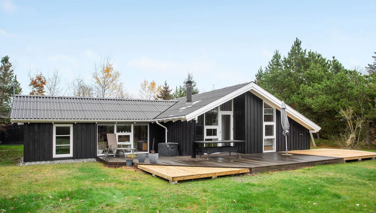 Casa unifamiliar del año 1996. A 1.3 km del mar. Privado: terreno en estado natural 1'200 m2. Terraza (40 m2), barbacoa (columpio). En el inmueble: sauna, trampolín, lavadora. Aparcamiento junto a la casa. Estación de carga eléctrica. Tienda de comestibles 3 km. Campo de golf 5 km. El propietario no acepta grupos de adolescentes/jóvenes.