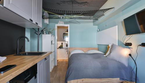 Este apartamento tiene aire acondicionado y incluye zona de estar, cocina con nevera y TV vía satélite.