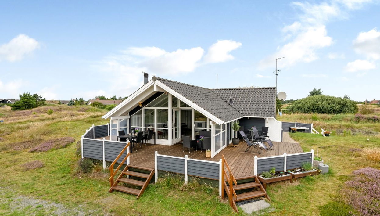 Casa unifamiliar del año 1998. A 1 km del mar. Privado: terreno 3'970 m2. Terraza (60 m2), barbacoa, lugar para hoguera, parque infantil (columpio). En el inmueble: sauna, lavadora. Aparcamiento junto a la casa. Tienda de comestibles 600 m. El propietario no acepta grupos de adolescentes/jóvenes.