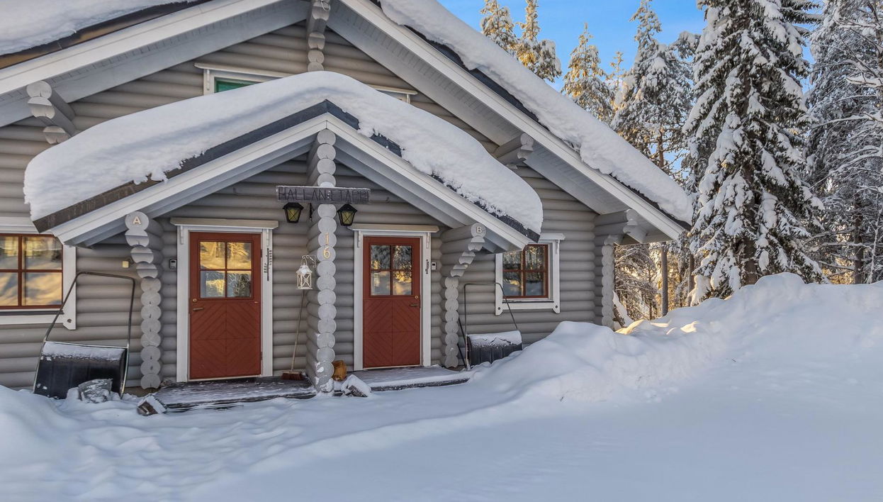 Casa adosada ubicada en el centro turístico de Ukkohalla, 53 m2 + buhardilla 9 m2, construida en 1991, finca en 3 plantas, cocina, dormitorio, buhardilla, sauna, cuarto de ducha, WC separado en la planta baja, vestidor, cuarto con aparador caliente, balcón, terraza, chimenea y leña. Una cama doble en el dormitorio, dos camas más un colchón de repuesto en la buhardilla, un sofá-cama en el salón. Equipo: 2 placas eléctricas, horno eléctrico, microondas, frigorífico + congelador, extractor, vajilla, lavavajillas, tostador, hervidor de agua, cafetera, equipo de planchar y limpiar, aspiradora, lavadora, TV, DVD, radio, reproductor de CD, enchufe para la calefacción de coche, bote de uso compartido, columpio para niños. Ukkohalla: centro turístico ubicado a orillas del lago Syväjärvi, con centro de información, tienda, restaurante, spa, centro de pistas, senderos de motonieves, senderos de esquí, servicios programados, playa (la información adicional en www.ukkohalla.fi). Los servicios de Ukkohalla a 1,5 km de distancia. Aeropuerto Kajaani a 86 km, Oulu a 170 km, Helsinki a 650 km, parada de autobús Hyrynsalmi a 18 km, estación de tren Kontiomäki a 66 km. Mascotas están prohibidas, vista bonita a las pistas y el lago Syväjärvi. La cabaña está disponible a partir de las 16.00 h del día de llegada hasta las 12.00 del día de salida.
